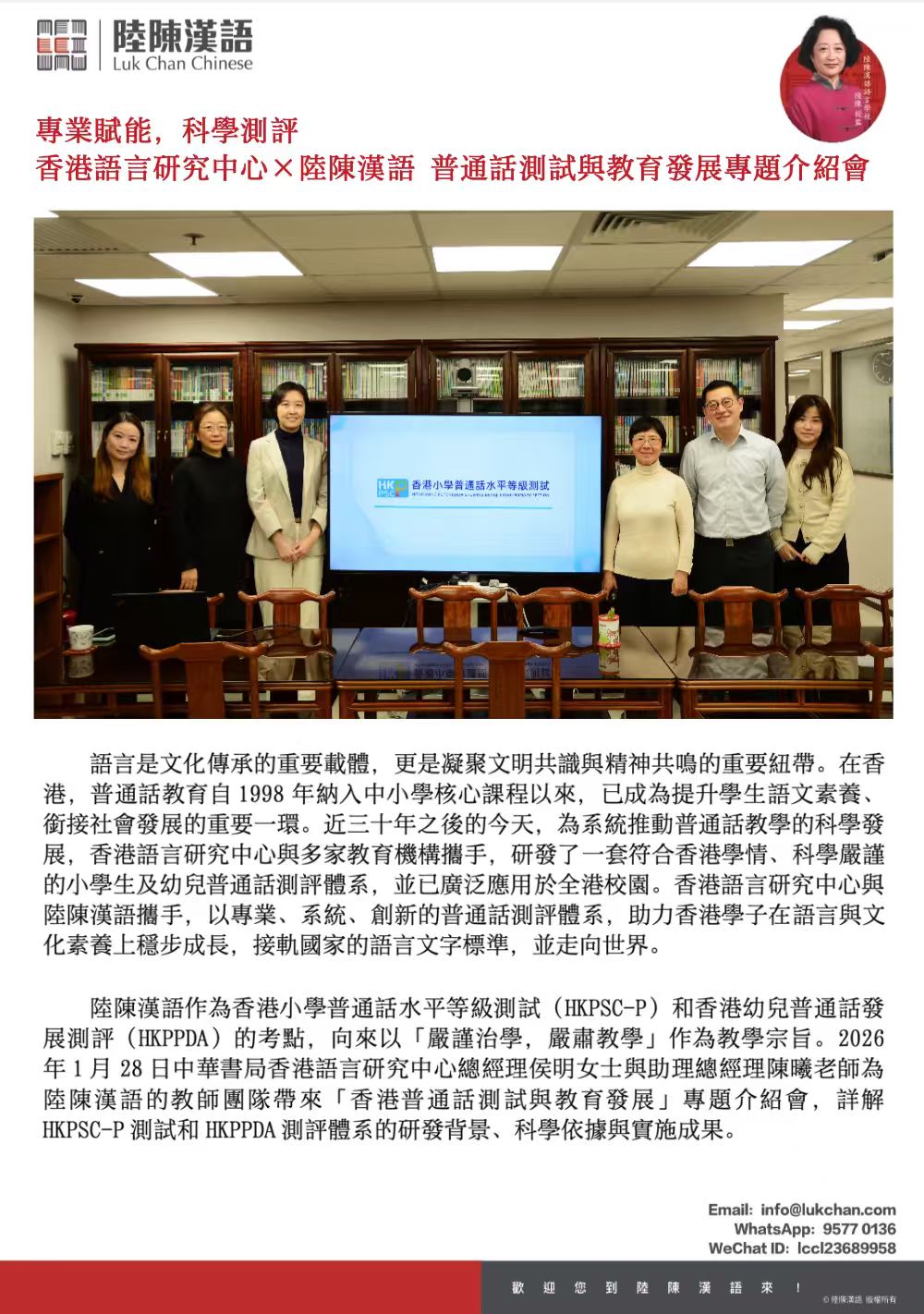 專業賦能,科學測評| 香港語言研究中心×陸陳漢語 普通話測試與教育發展專題介紹會