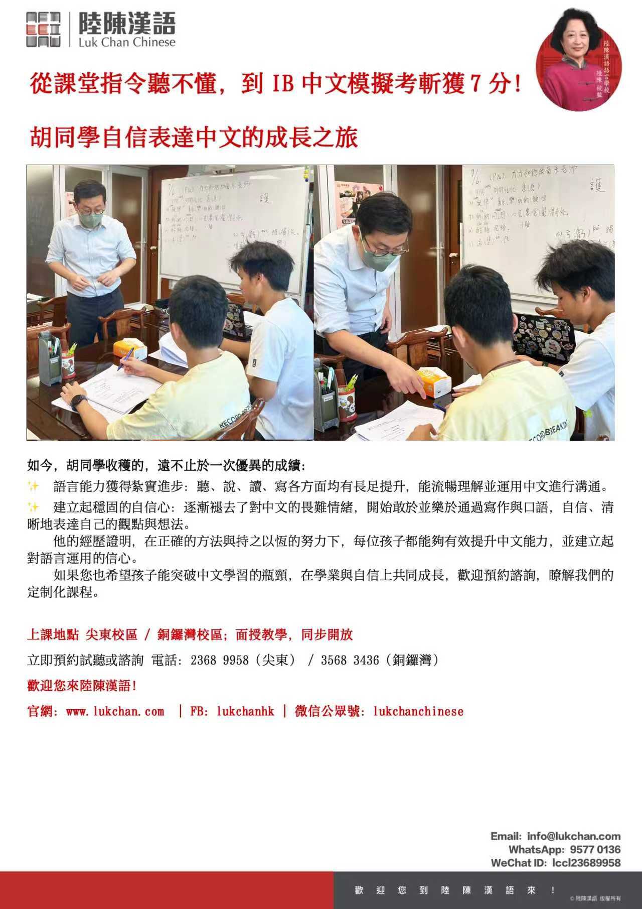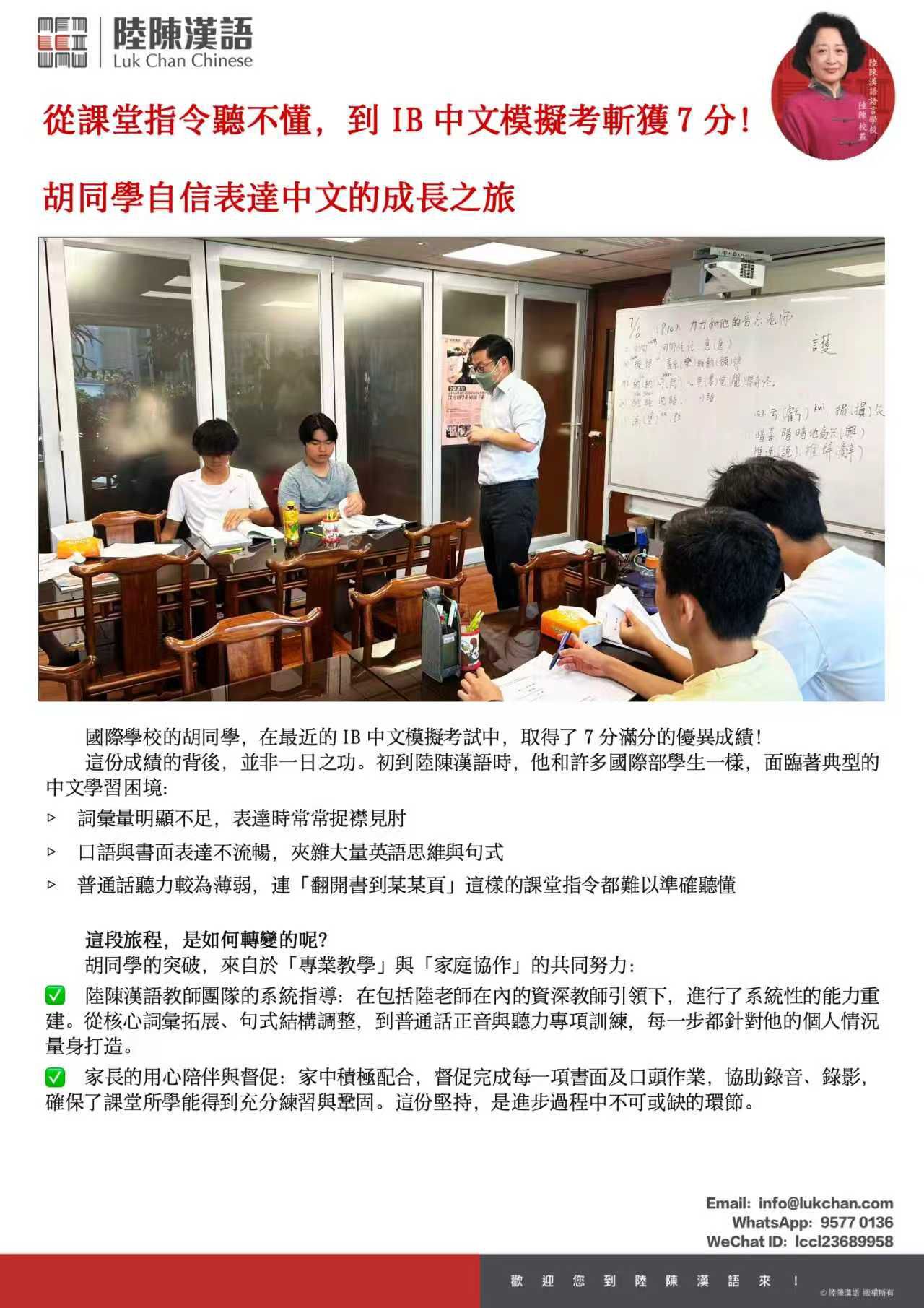 從課堂指令聽不懂,到IB中文模擬考斬獲7分!胡同學自信表達中文的成長之旅